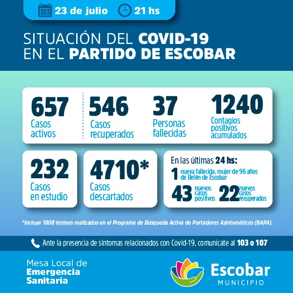 Situación COVID-19 informada por la Municipalidad de Escobar al 23 de Julio 2020